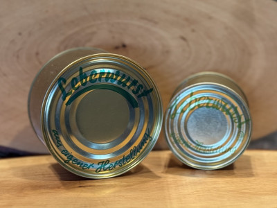 Sie erhalten herzhafte Leberwurst im praktischen Dosenformat. Die Wurst eignet sich für Brotzeiten. Sie streichen die Masse direkt aufs frische Brot. Der Geschmack bleibt kräftig und mild würzig.